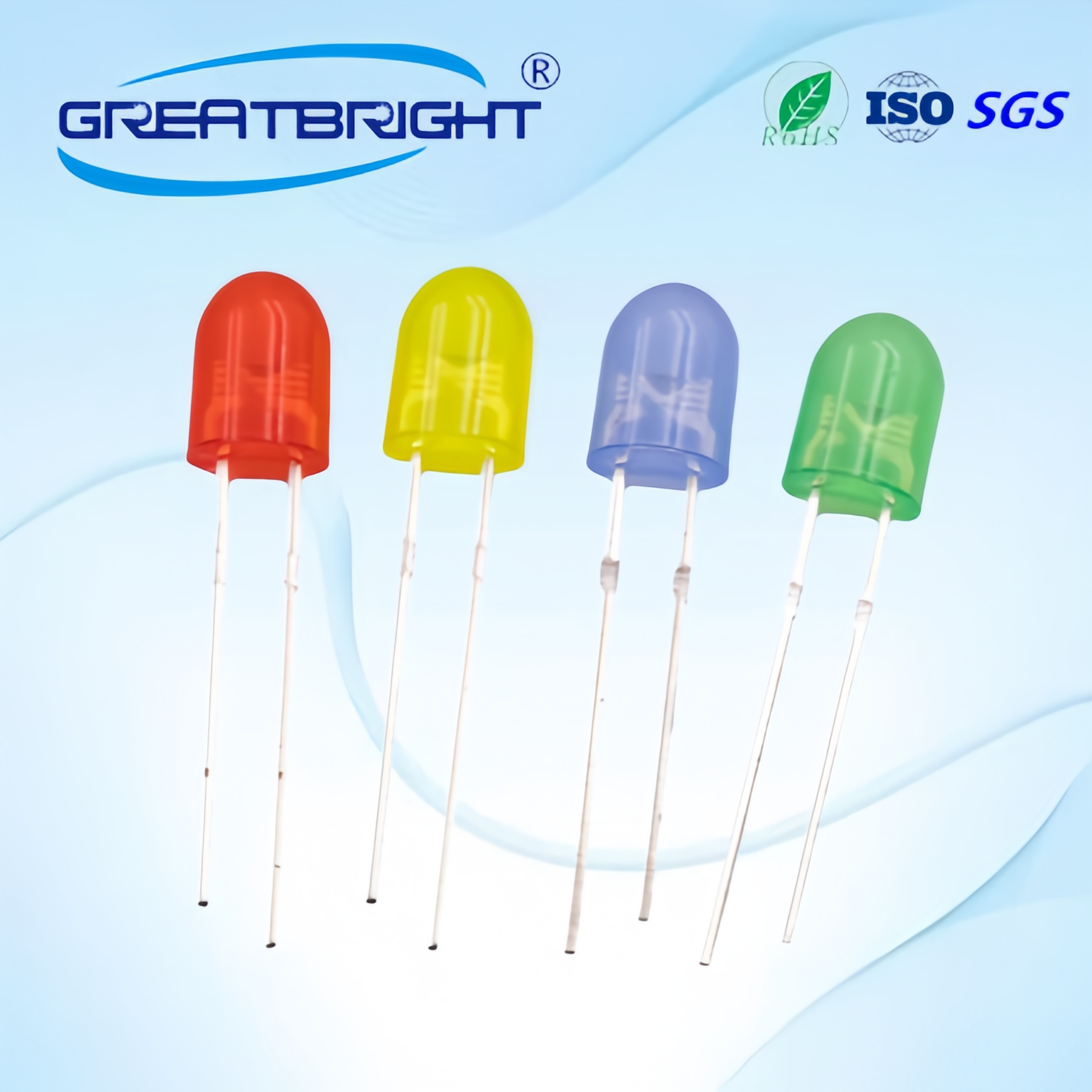 确认参数:电压、波长、亮度(mcd)、视角(如120°)、引脚类型(直插/贴片)。