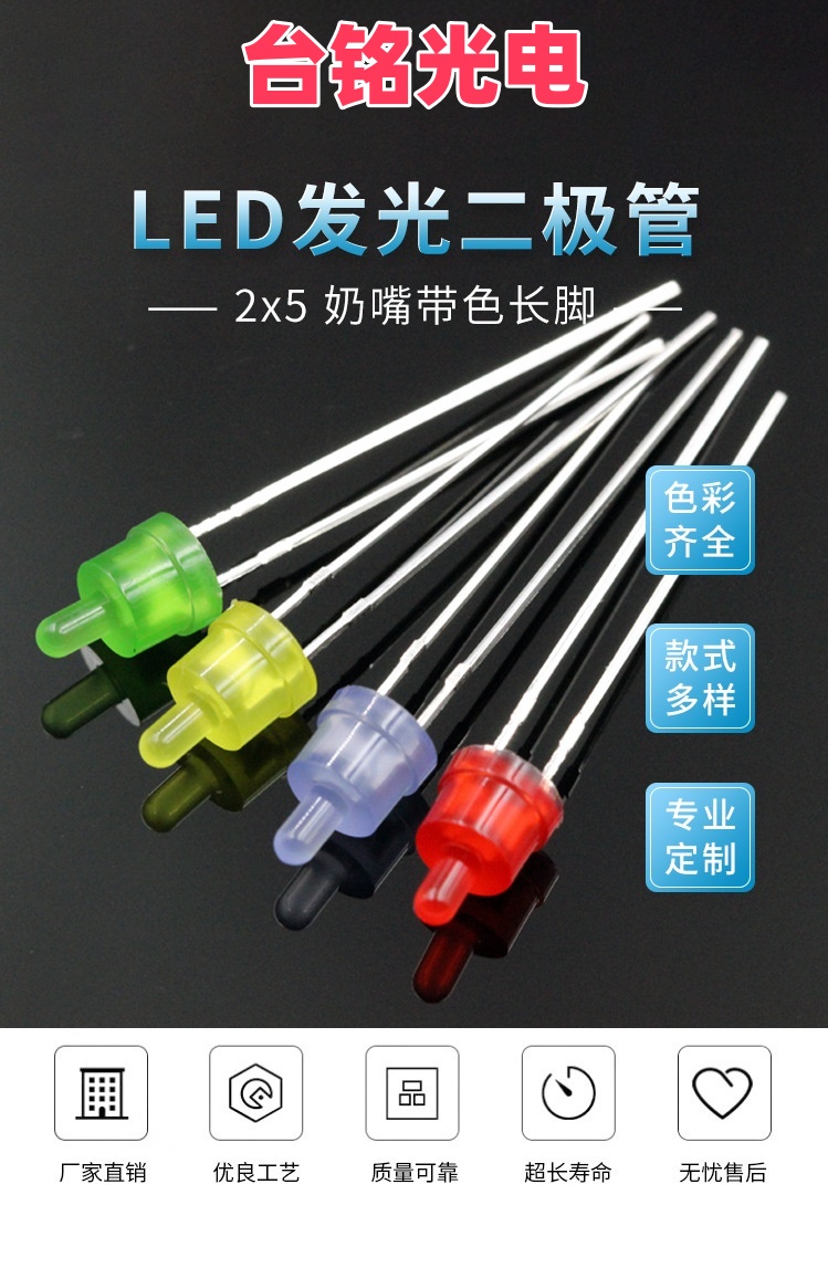 以下是台铭光电 2mm奶嘴型直插LED灯珠(F2透明红/绿/蓝/白光,长脚) 的推荐信息