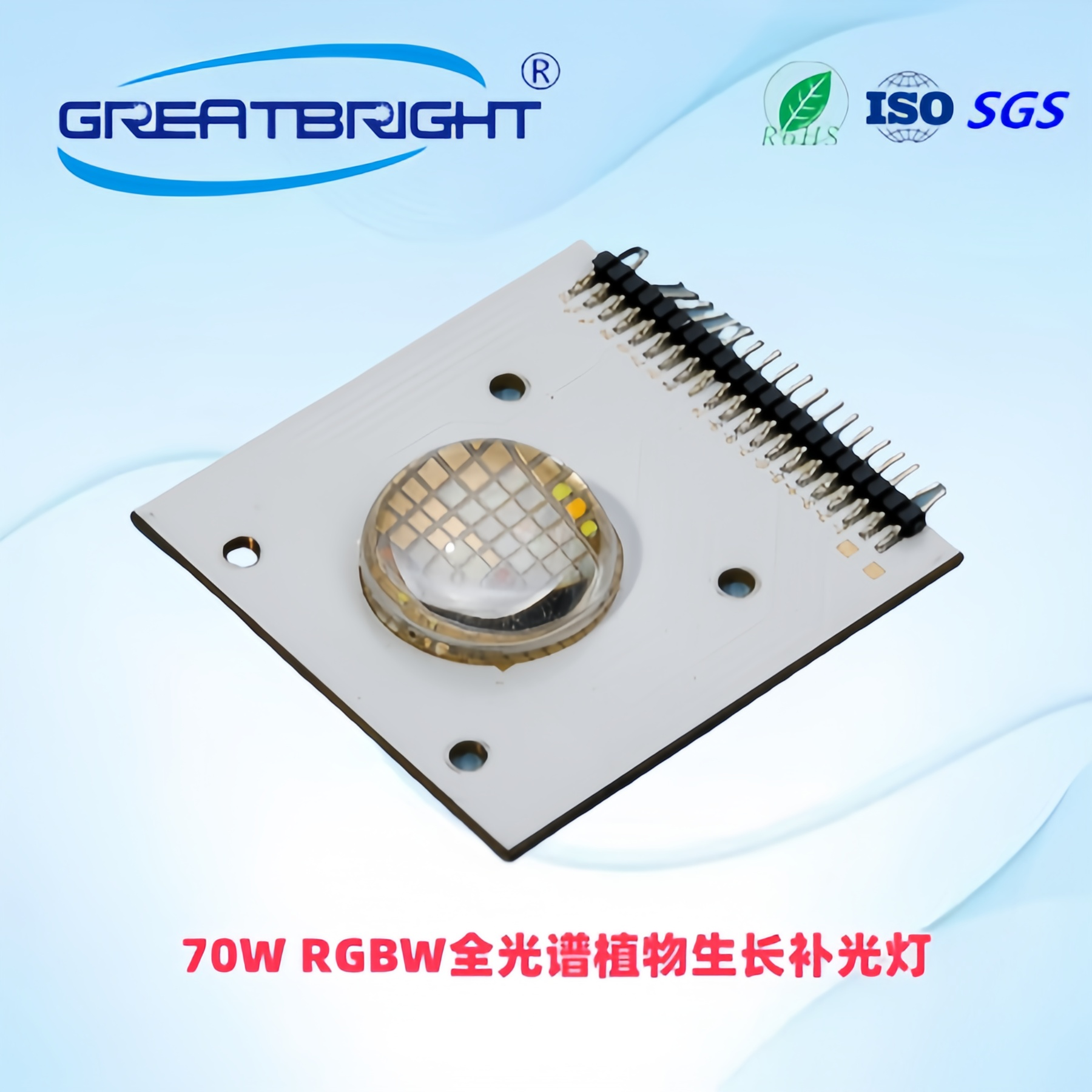 说明:70WRGBW全光谱植物生长集成补光灯光源,主要用于植物生长补光,