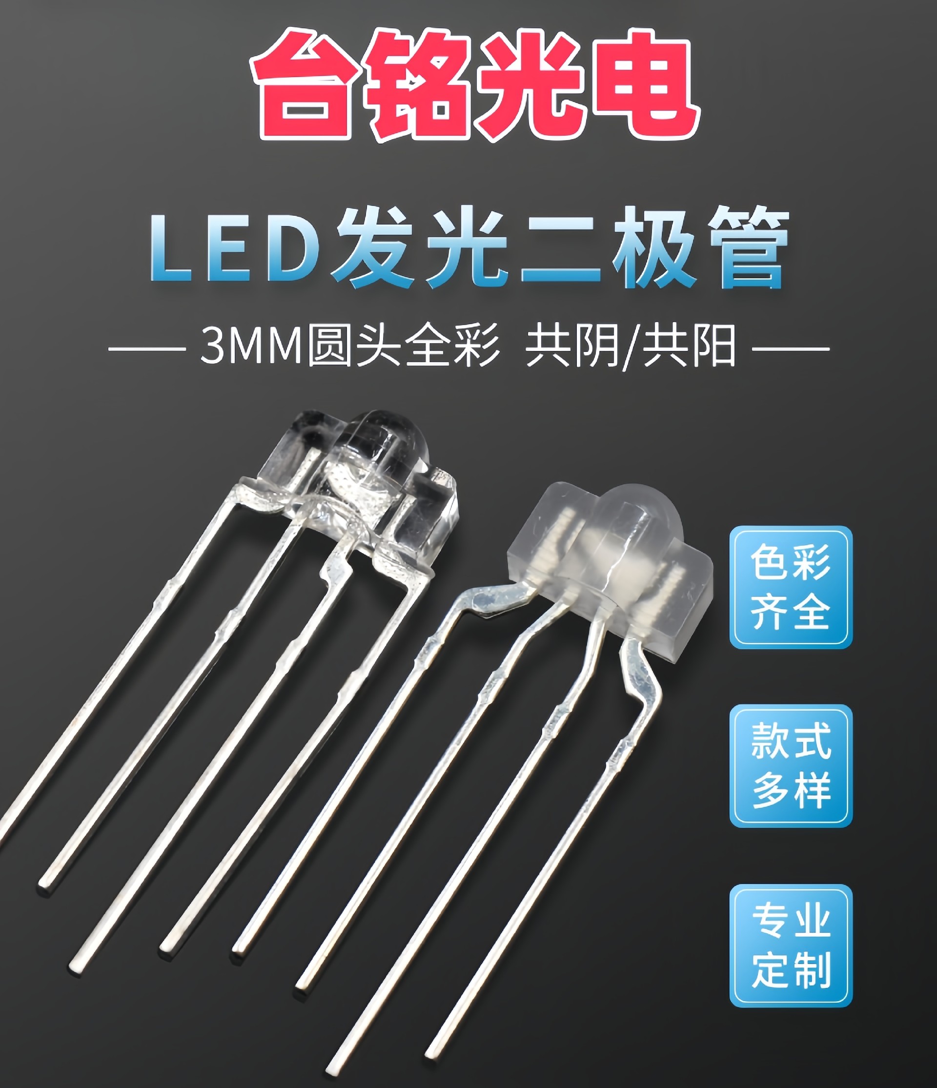 以下是关于台铭光电 F3/3mm 全彩RGB机械键盘背光七彩直插LED灯珠 的详细整理,专为键盘背光设计优化: