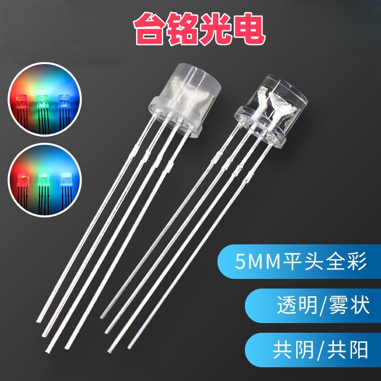 以下是关于 台铭光电F5/5mm平头四脚全彩RGB高亮灯珠共阴共阳直插LED灯珠 的详细信息整理,供您参考: