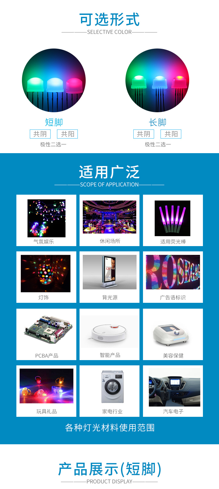以下是关于 台铭光电8mm草帽四脚全彩RGB高亮灯珠共阴共阳F8直插LED灯珠的详细信息整理,供您参考: