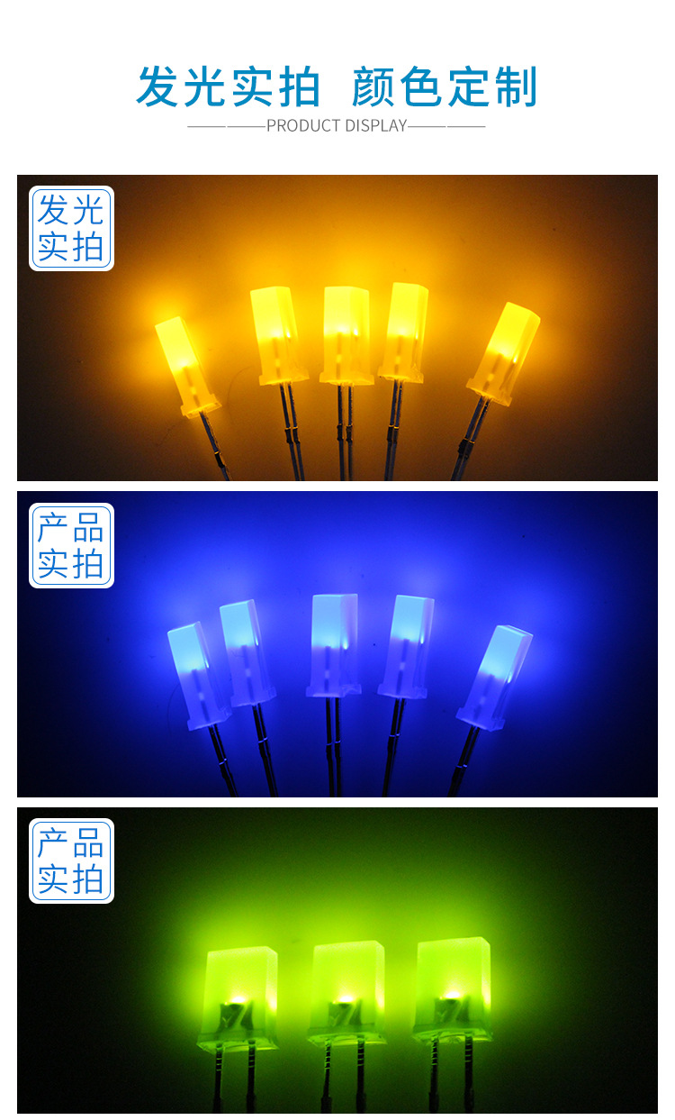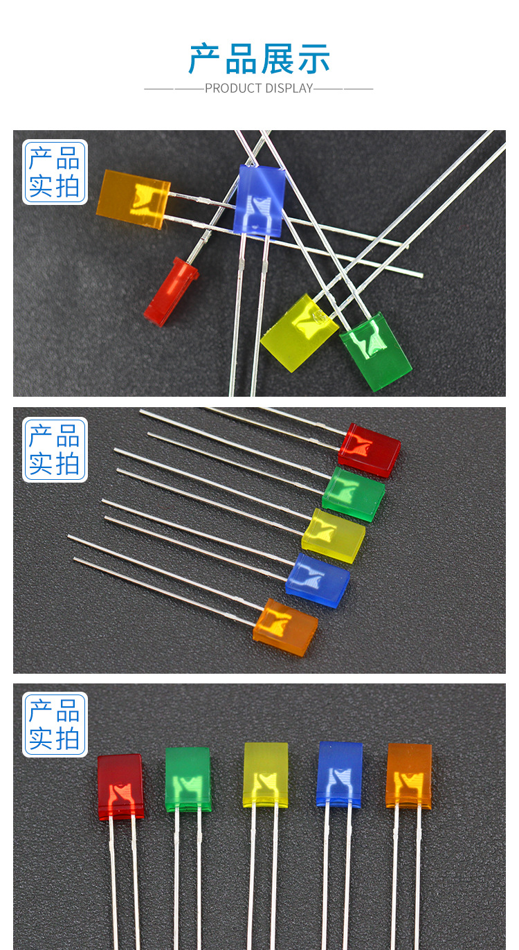 2X5X7方形带色长脚直插LED灯珠红蓝黄翠绿光257led灯珠