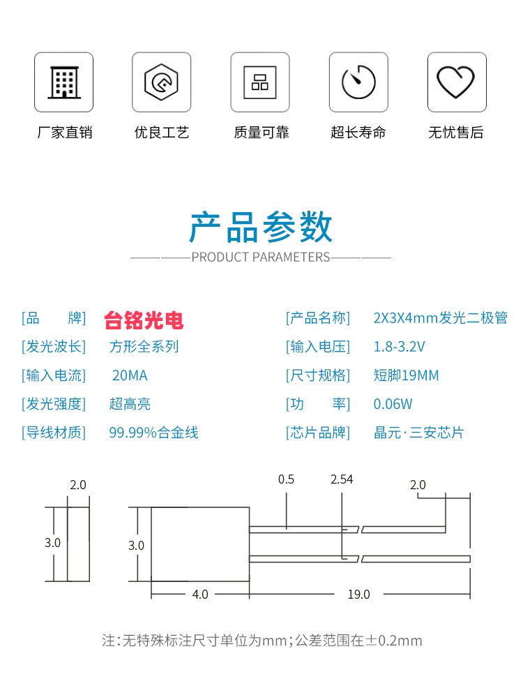 适用于需要 高亮度、长引脚稳定性 的工业、汽车及消费电子领域。
