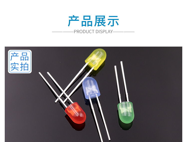 确认参数:电压、波长、亮度(mcd)、视角(如120°)、引脚类型(直插/贴片)。