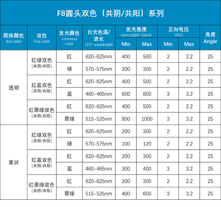 F8/8mm圆头双色LED(直插式DIP封装)