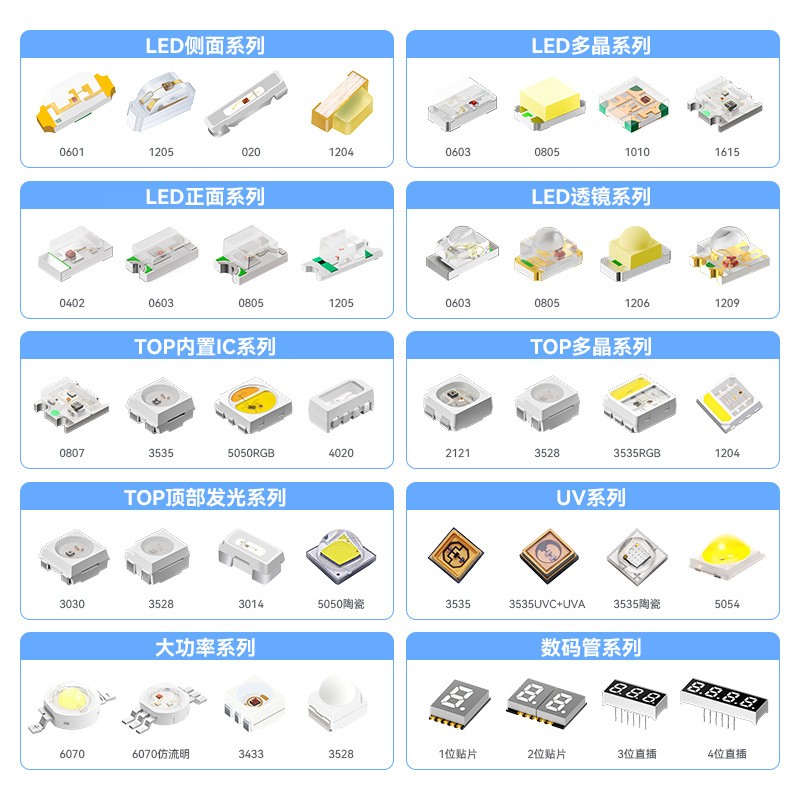 贴片LED灯珠的型号非常多,主要按封装尺寸(即外形长宽,以毫米为单位)来划分系列。每个系列下又有不同光电参数(颜色、亮度、电压等)的变体。这里为您系统地整理目前市场上最常见和主要的贴片LED型号系列:一、按封装尺寸划分的主流型号系列1. 小型化/低功率系列主要用于指示灯、背光、信号灯。0201系列:0201&nbs...